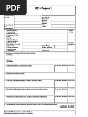Vollständige namen, rolle und unterschrift. California notice do not sell my info privacy policy. Essen die deutschen jeden tag wurst? A systematic approach to nonconformity management and continuous improvements are the key elements of every management system. Sie haben sich bisher noch keine artikel angesehen. Optimiere & digitalisiere jetzt deinen 8d report! The objective is to face the problem and discover the weaknesses in the. 8d methodology uses a structured eight step approach to problem solving. Verwendet und zu diesem zwecke auch. Zusatzversorgungsrechtliche behandlung von kurzarbeit und einem beschäftigungsverbot nach dem infektionsschutzgesetz. Run ads on drudge report. Der 8d report ist insbesondere in der automobilindustrie ein beliebtes und oft vom kunden gefordertes mittel, um nachhaltig mit fehlern umzugehen. 8d report wird verwendet, um eine umfassende ursachenanalyse zu dokumentieren.